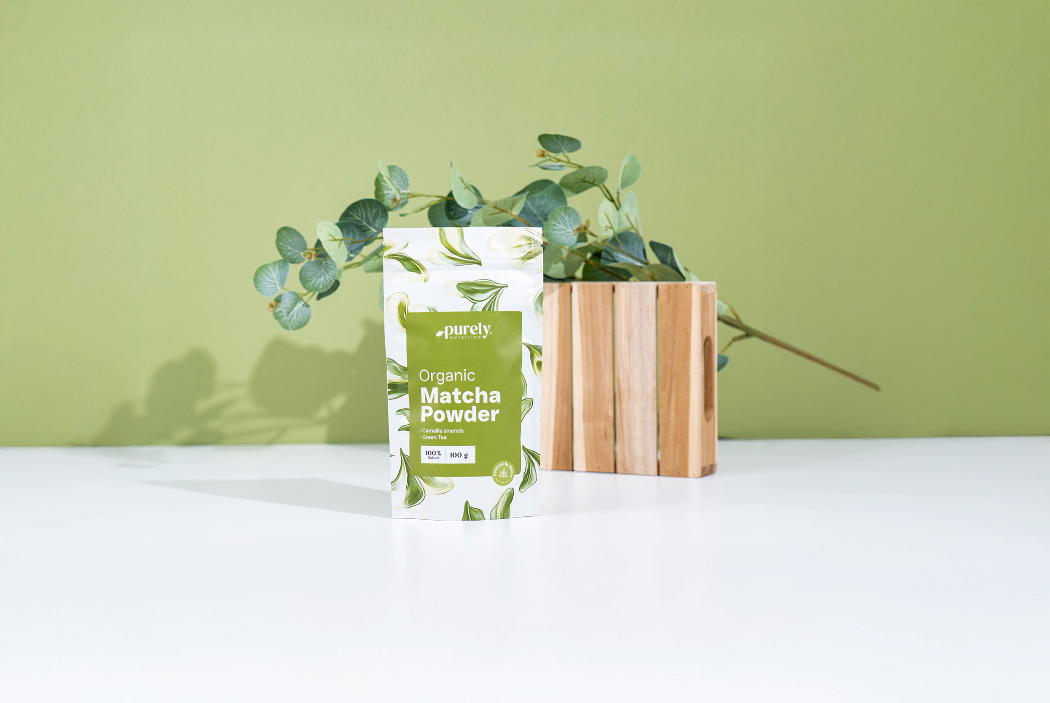 Sestavine: listi zelenega čaja matcha (Camellia sinensis) v prahu. Iz certificirane ekološke pridelave. Distribucijo nadzira SI-EKO-002. Kmetijstvo izven EU.